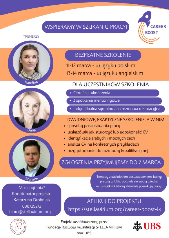 Do 7 marca 2024 lub do wyczerpania miejsc przez stronę: Career Boost IX (stellavirium.org)