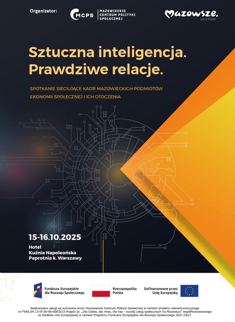 Mazowieckie Centrum Polityki Społecznej serdecznie zaprasza na 2-dniowe spotkanie sieciujące dla kadr mazowieckich podmiotów ekonomii społecznej i ich otoczenia pt. „Sztuczna inteligencja. Prawdziwe relacje”, które odbędzie się od 15 do 16 października 2025 r., w Paprotni k. Warszawy.